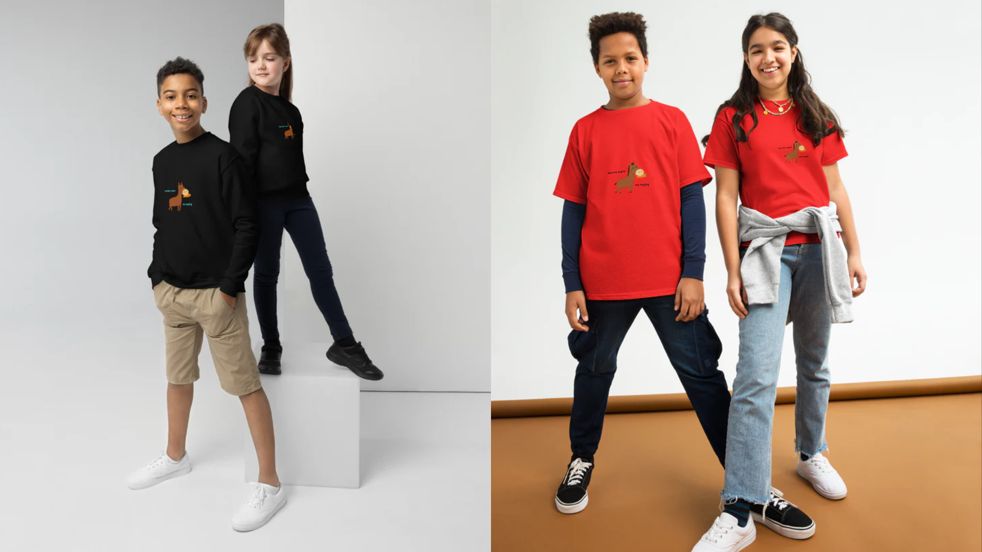 Youth crewneck sweatshirt 'horses make me'